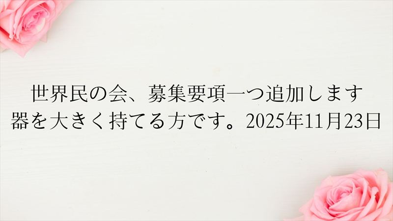 世界民の会、募集要項一つ追加します。器を大きく持てる方です。2025年11月23日